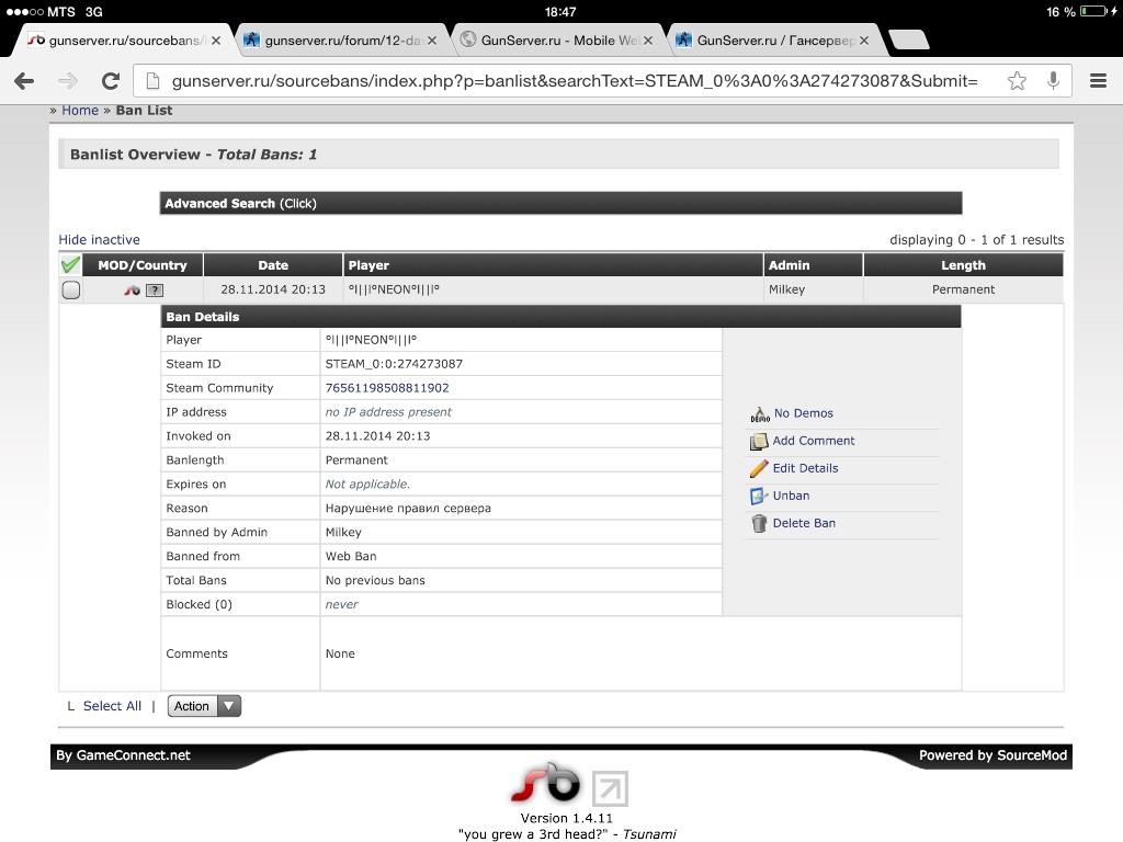 Админы увидите его в игре выпишите ему перманент в комментарии укажите, что я в курсе.