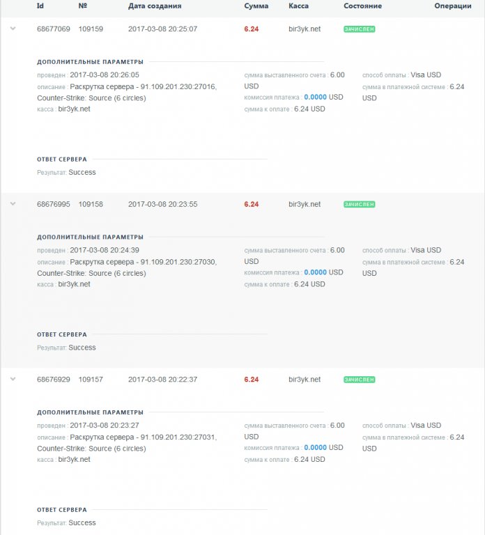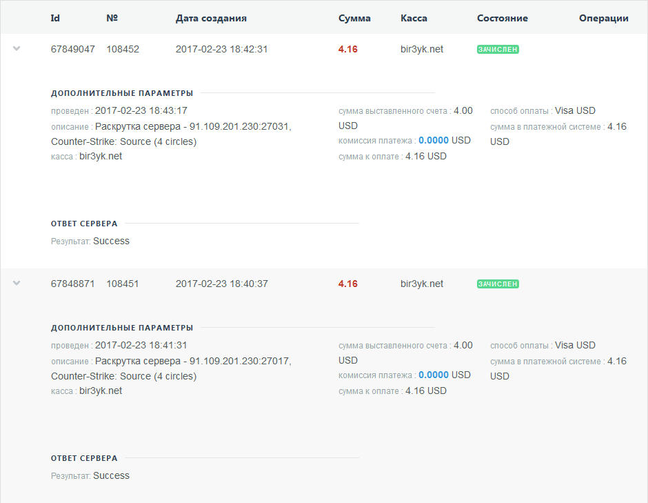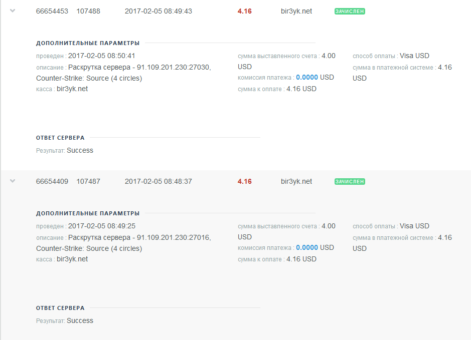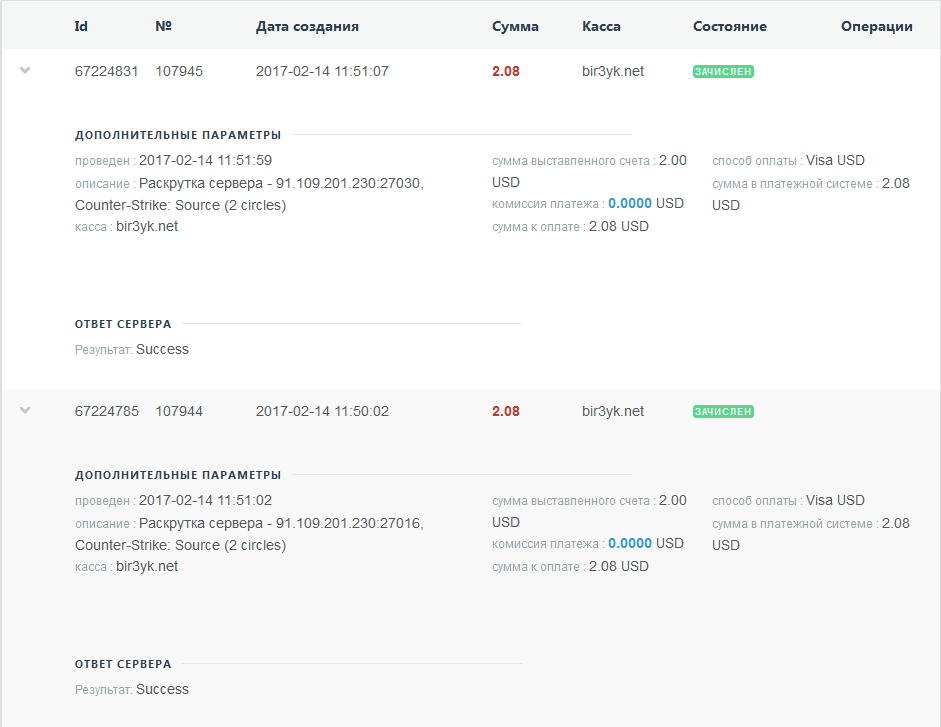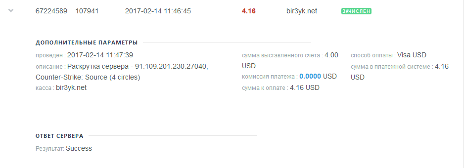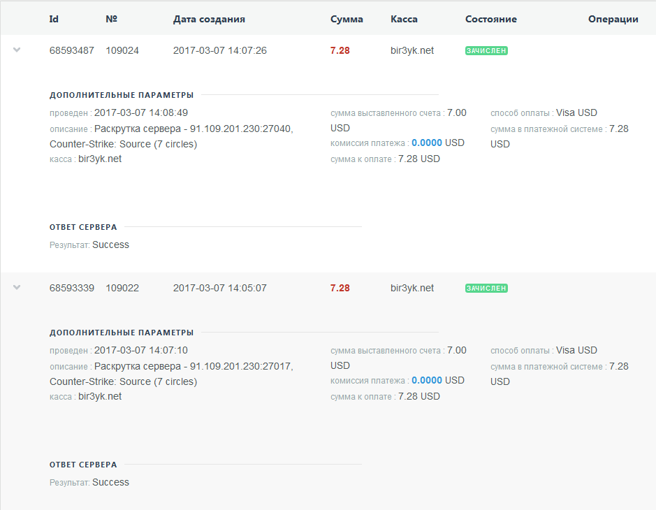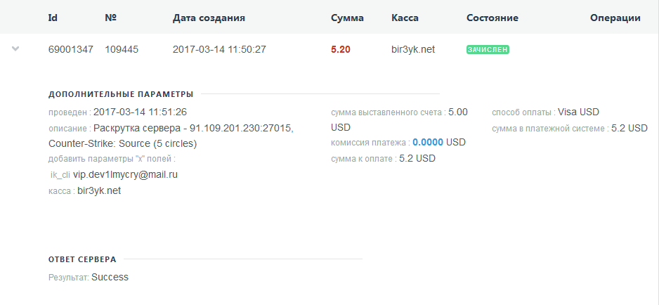 Оплата админки