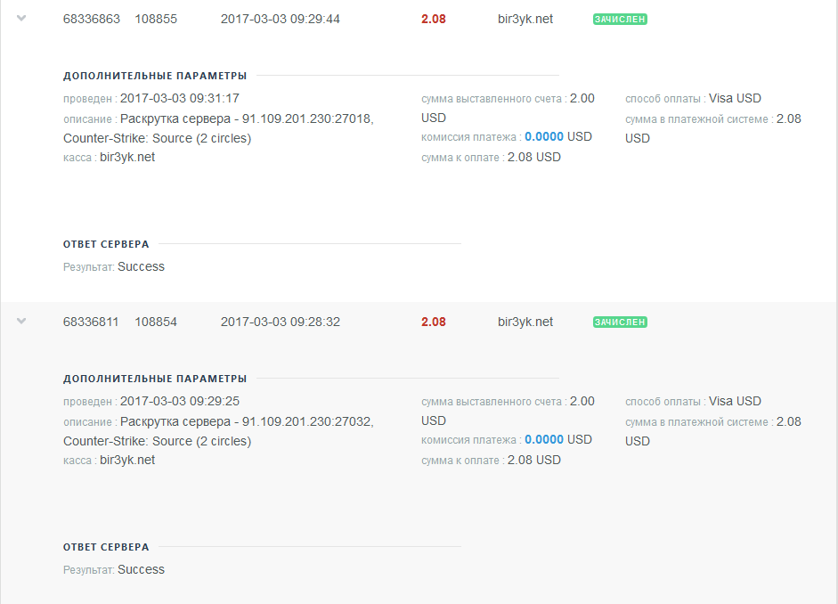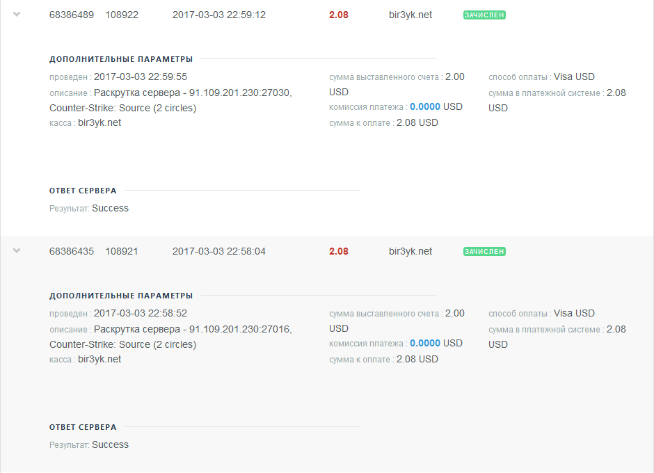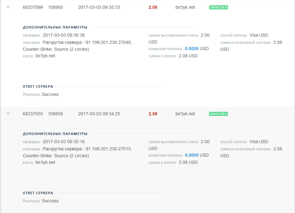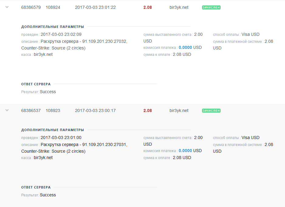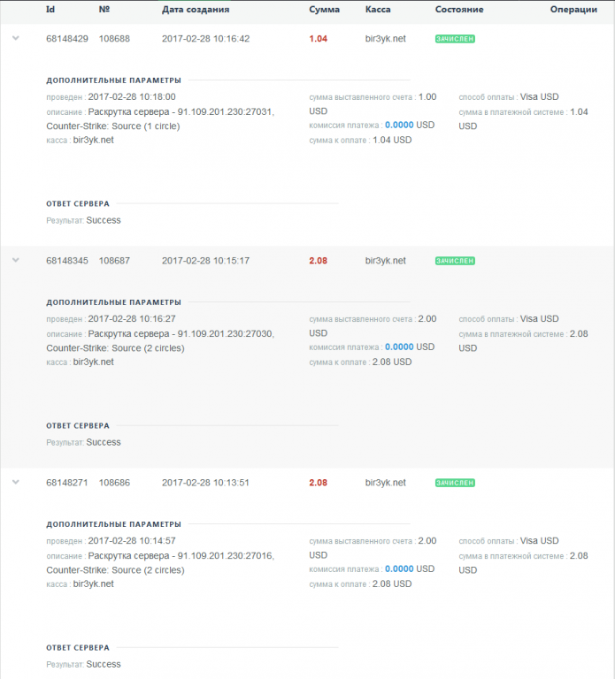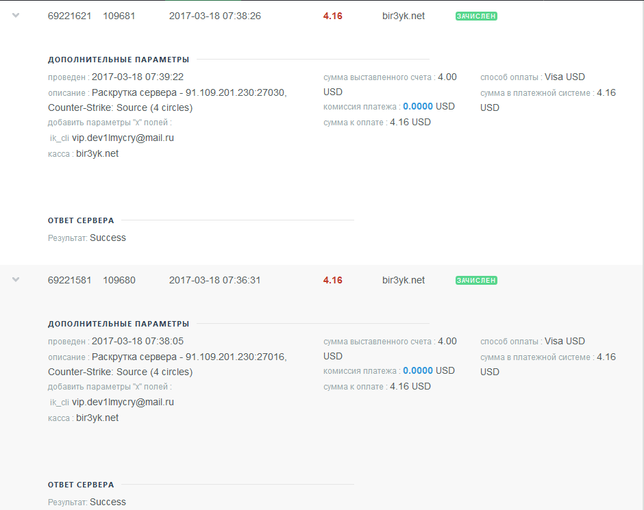 Оплата админки