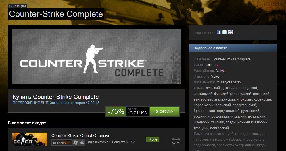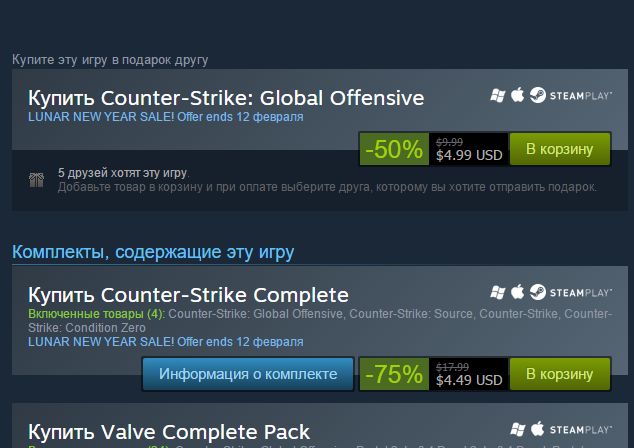 В стиме начались распродажи) лицензия на ксс и ксго со скидкой 75%- 2-49 бакса- где то 70 руб?. Комплект все кс за 3-74 бакса. приобретаем, наслаждаемся)