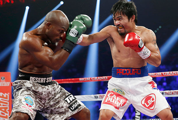 Боксеры Флойд Мэйуэзер и Мэнни Пакьяо подписали контракт на поединок века ВНИМАНИЕ: Спойлер! [ Нажмите, чтобы развернуть ][ Нажмите, чтобы скрыть ] Флойд Мэйуэзер Бой на миллиард долларов» — это не название кинофильма. Это афиша реального боксерского поединка, намеченного на 2 мая в Лас-Вегасе. Речь идет о долгожданной встрече на ринге между американцем Флойдом Мэйуэзером-младшим и филиппинцем Мэнни Пакьяо, контракт на проведение которой был подписан после полугода напряженных переговоров. Бой может стать первым однодневным спортивным событием, собравшим миллиард долларов дохода. Чемпионы всего на свете Вялые переговоры между сторонами тянулись мучительно долго и не давали результата. Прорыв произошел 27 января. На баскетбольном стадионе в Майами Флойд и Мэнни обменялись телефонными номерами, после чего между ними состоялся предметный разговор. Менее чем через месяц контракт был, наконец, подписан. Мэйуэзер даже разместил снимок с подписями в одной из соцсетей. В последний раз более или менее схожий ажиотаж вокруг боксерского поединка наблюдался 13 лет назад, перед боем между Майком Тайсоном и Ленноксом Льюисом. Впрочем, нынешнее событие на порядок превосходит предыдущее как по общественному интересу, так и по финансам. Бой между Мэйуэзером и Пакьяо наверняка станет самым дорогим и прибыльным однодневным состязанием в истории спорта. Это первое спортивное шоу, которому по силам собрать миллиард долларов. Организаторам необходимо выполнить несколько условий. Главный источник дохода — телевидение. Предполагается первая в истории платная трансляция боя по кабельному телевидению Китая. По мнению Боба Арума, промоутера Пакьяо, численность телеаудитории в Поднебесной превысит 100 миллионов человек. Специалисты уверены, что каждый десятый китаец пожелает воочию лицезреть, как два лучших боксера планеты колотят друг друга. Если 100 миллионов китайцев заплатят по пять долларов, получится уже полмиллиарда. Это вдвое больше того, что можно получить с телеаудитории в США. По опыту прежних боксерских поединков можно предполагать, что бой посмотрит 1 процент населения страны, то есть около трех миллионов человек. Если каждый из них заплатит по 100 долларов (именно столько стоит подписка), это даст еще около 300 миллионов. Мэнни Пакьяо (справа) в бою против Тимоти Брэдли. Апрель 2014 года. Билеты на бой, который пройдет в столице игорного бизнеса Лас-Вегасе, раскупили за 15 минут. Квитки поступили в продажу сразу после объявления Мэйуэзера о подписании контракта на проведение поединка, и через четверть часа торговля закрылась. Кроме того, за несколько минут были забронированы все номера на 1 и 2 мая в отеле комплекса MGM Grand, хотя цена за одну ночь на эти даты взлетела до 615 долларов. Возможно, бой был бы еще интереснее и ярче, если бы он состоялся несколько лет назад, когда соперники находились в расцвете сил. Впрочем, они и сейчас сильнейшие боксеры на планете вне зависимости от весовой категории. 36-летний Мэнни Пакьяо в ноябре прошлого года одержал 57-ю по счету победу — над Крисом Алгиери. Последнее из пяти поражений он потерпел в 2012 году от Хуана Мануэля Маркеса. У 37-летнего Флойда Мэйуэзера послужной список еще более внушительный. В графе «поражения» у него красуется гордый ноль. Все 47 своих боев на профессиональном ринге он выиграл. За спорт