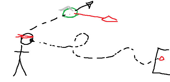 Летит (отбрасывается) граната туда, куда вы смотрите.
