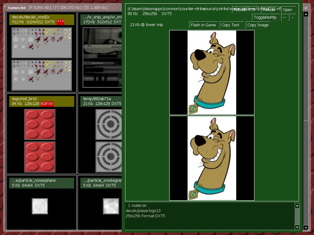 2) Подходим к спрею, смотрим на него (можно в режиме наблюдения) 3) Набираем в консоли команду mat_texture_list 1 (не уводя взгляд от спрея) 4) В открывшемся окне окне находим спрей, нажимаем на него, далее нажимаем Copy Text 5) Закрываем окно (которое появилось, когда ввели mat_texture_list 1), нажимаем Настройки>Сетевой режми>Загрузить спрей 6) В графе 'Имя файла' нажимаем 'вставить' (ctrl+v) и стираем всё после .vtf, получится примерно следующее: 7) Нажимаем 'Открыть' и сохранаем настройки 9) Готово |