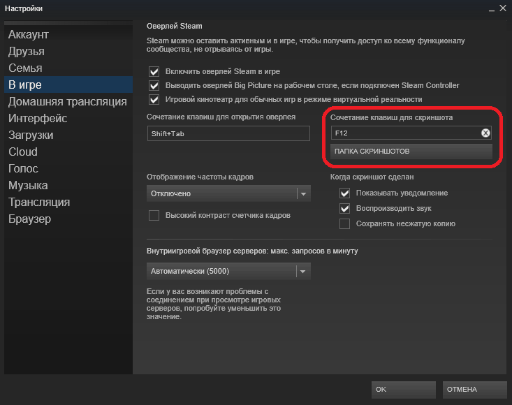 После проведенных манипуляций вы снова сможете делать скриншоты с помощью сервиса Steam.