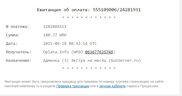 Получатель платежа Oplata.Info (WMID 063677635749)
