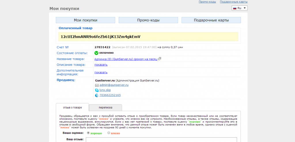 Назначение Админка (1) Премиум (GunServer.ru) сроком на месяц