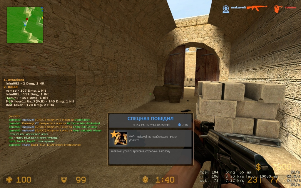 6. всего год назад был проведен нормальный инет. И понеслась))) сначало был ган гейм найден))) а вместе с ним классик. потом меня начало кикать из за пинга с ган гейма((((, и я перешел на классик на котором было мало народу. Потом начали люди появляться вечерами... оказалось они давно знают друг друга, играют давно на сервере, общаются))). Сейчас конечно же многие по выростали и по уходили. но много(очень) новеньких приходит. Хотелось бы чтоб нормальные игроки приходили и оставались на сервере, поэтому для начала хотелось бы оградить нормальных игроков от хамства и грязи. в дальнейше буду стараться повышать квалификацию и выявлять "шипко метких" нарушителей.