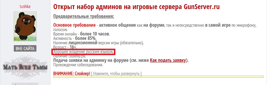 1) Постоянные маты от данного игрока. При этом считает, что всё сказанное им по делу и фильтрует речь только в присутствии админов на сервере (с пиратки же если послушать - уши вянут).