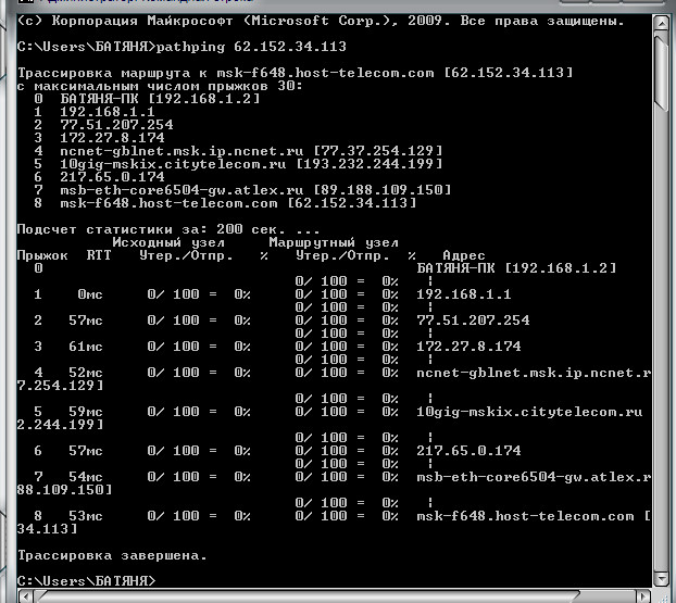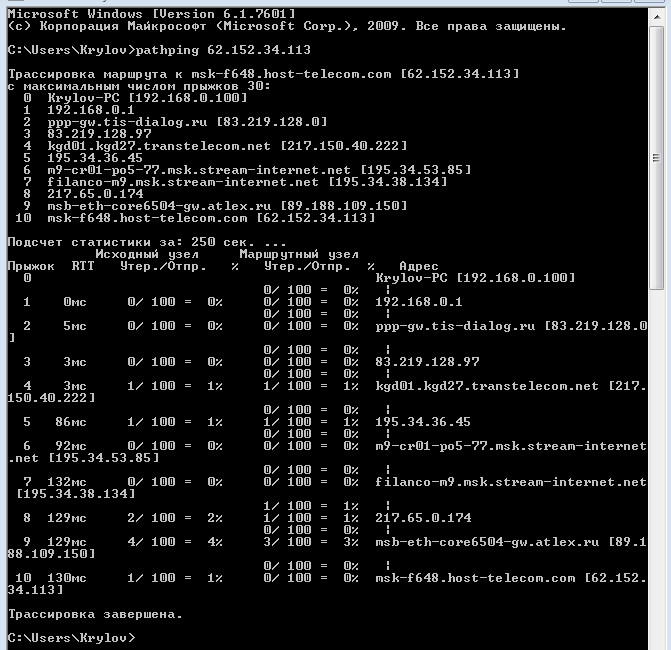 А потом я ввел pathping 62.152.34.113