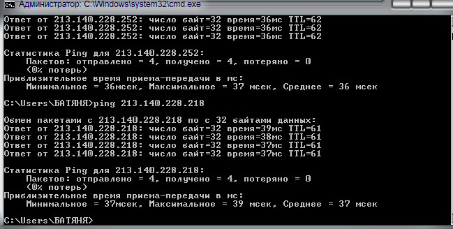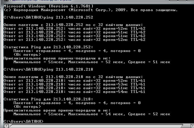 Помоему 213.140.228.218 и 213.140.228.252 это два ДНС сервера, если это ДНС сервера внутрений сети твоего провайдера, то время отклика 52 мс для внутрений сети очень большое, должно быть 2-5 мс.