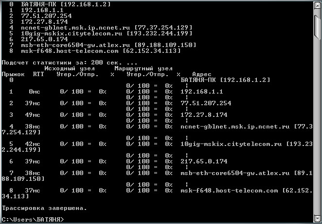 На 5 хопе у меня начинаются проблемы, это галит Московский провайдер, то ли там работы идут сейчас, то ли его оборудование не справляется с такой нагрузкой, а, если смотреть дальше, то там картинка еще хуже, на 7 хопе идет ище один Московский провайдер, оборудование которого нагрузка просто накрыда с головой.