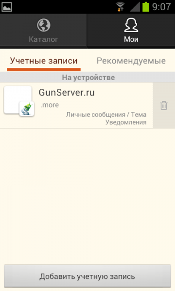 - После первого запуска выбрать "Добавить учетную запись"