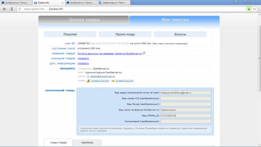 Вы все равно чаще платите не по ссылкам на сайте а на прямую в кошелки, а после таких оплат подтверждения на почту не приходят и отслеживать оплату становится немного сложно. А каждый раз просить его Линкс посмотри этого, а посмотри того, а пришли ли от того т.д. я не имею желания, поэтому все к нему по оплате админок и как их оплачивать.