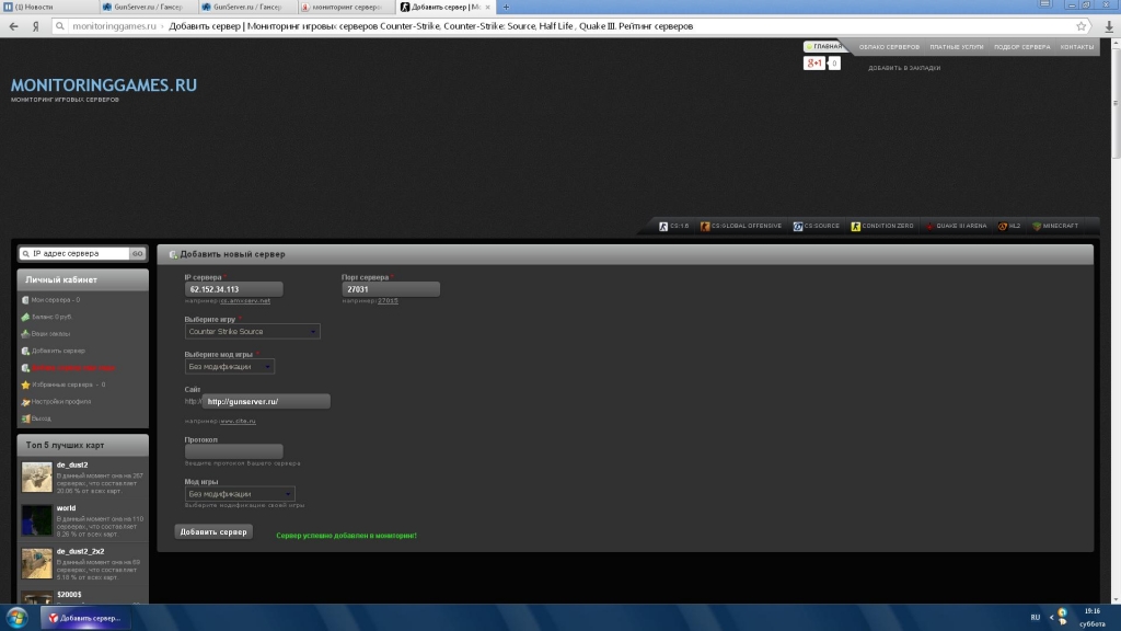 Сайт GunServer.ru