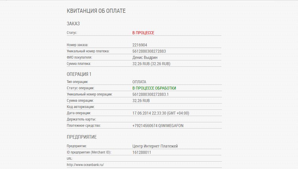 Commission 0 rub. 65 kop.