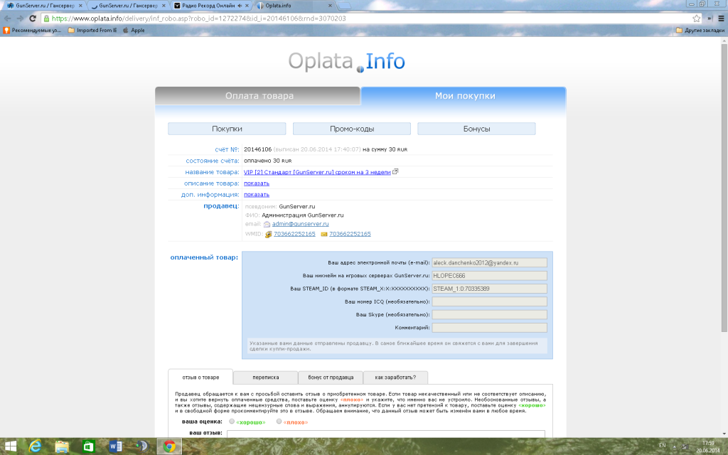 Ваш никнейм на наших игровых серверах;