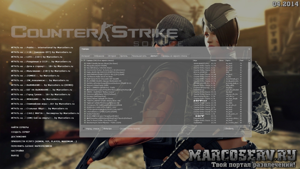 Привет) А кто подскажет мне где (GunServer.ru) Sparta Classic#2 (dust_2 only). У меня в "Истории" и в "друзьях" нету! Я все время играл в "Историях" Захожу в контру нету ни в "Историях" и в "Друзьях"...
