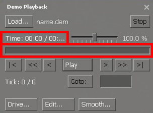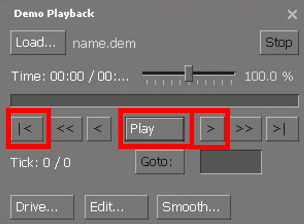 • В демо файлах используются метки времени, называемые тиками, для обозначения отдельных кадров в воспроизведении. Текущие и общие тики отображаются слева от кнопки Go to: