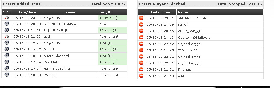 Давненько не заходил на ваши сервера, тут решил... Ник - se7en. Вчера зашел - забанен. Думаю ошибка что ли... Сегодня тоже самое. Бан