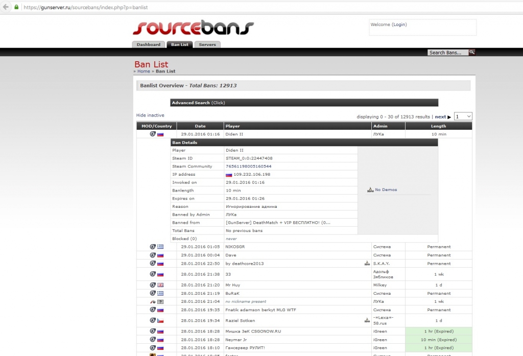 Хочу услышать админа "лука" за бан 29.01.2016 01:16 якобы за игнорирование админа. Это уже не первое издевательство с его стороны, просто уже нагорело. :angry:
