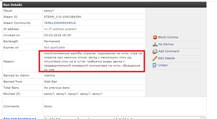 Комментарий к бану: