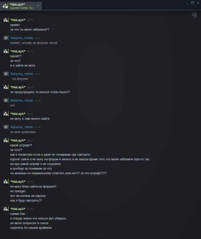 я захожу играть на сервер, если там читеры или действительно я слышу оскорбления и маты я баню, и потом я не постоянно в игре, у меня может быть комп включен я в спектрах и просто не могу слышать что там происходит так как в данные моменты меня за компом нету!